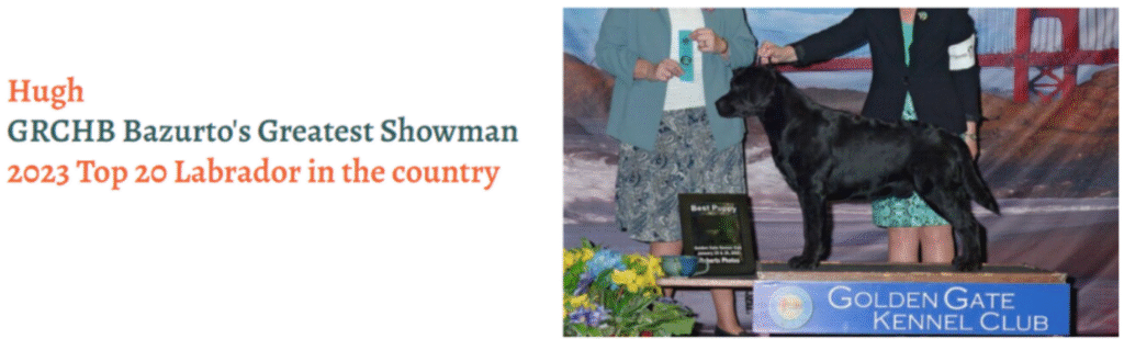 Hugh, is a 2023 Top 20 Labrador in the country and Grand Champion Bronze recipient!